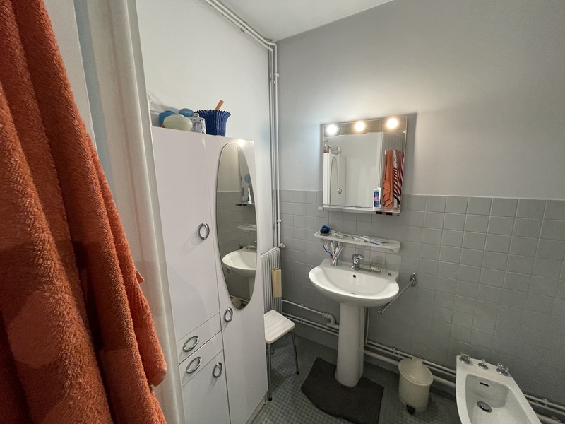 - Une salle de bain vétuste (baignoire, lavabo, bidet à déposer)