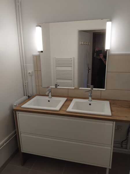 - Pose de vasque semi-encastrée et meuble de salle de bain